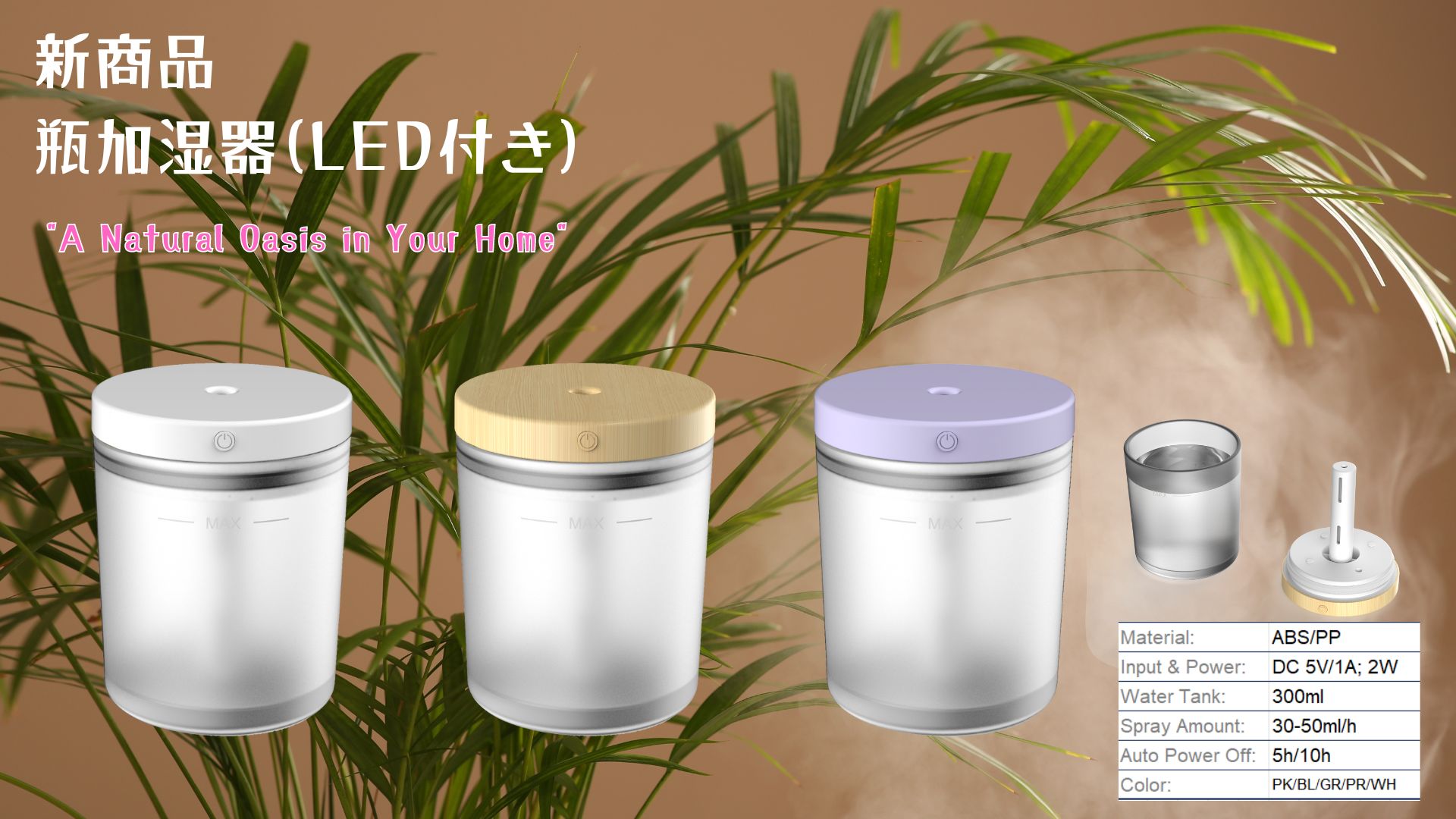 ガラス瓶を採用したコンパクト加湿器